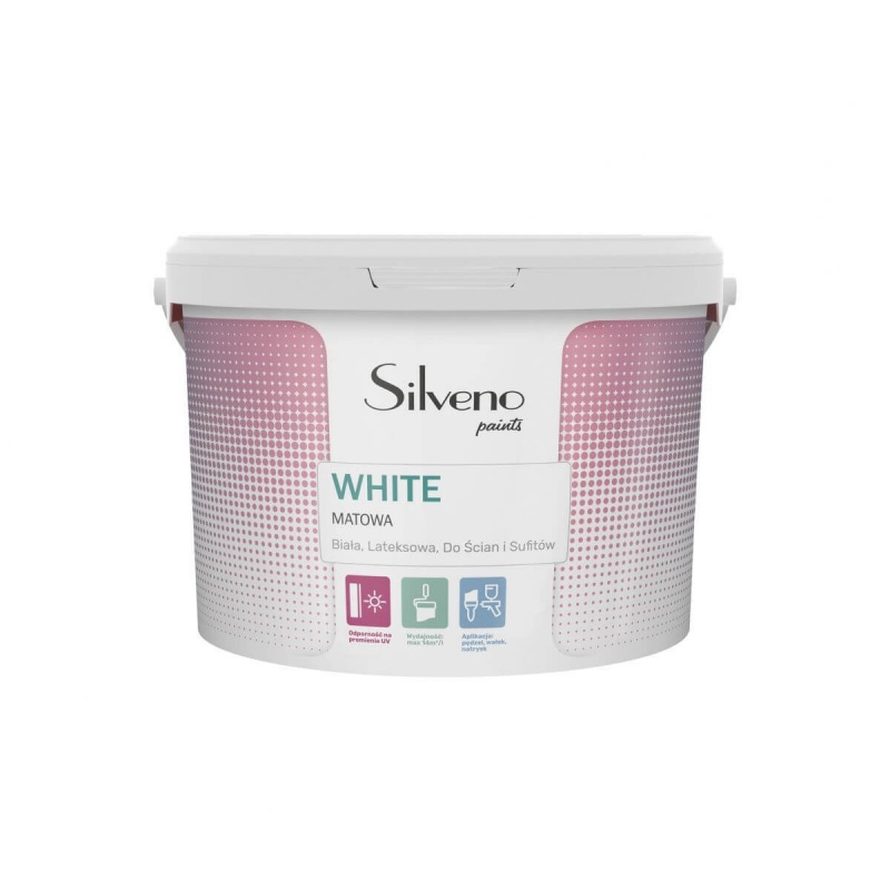 Farba Lateksowa Silveno White to śnieżnobiała emulsja wewnętrzna przeznaczona do malowania ścian i sufitów. Dzięki starannie dobranym pigmentom i wypełniaczom zapewnia doskonałe krycie oraz intensywny odcień bieli.
