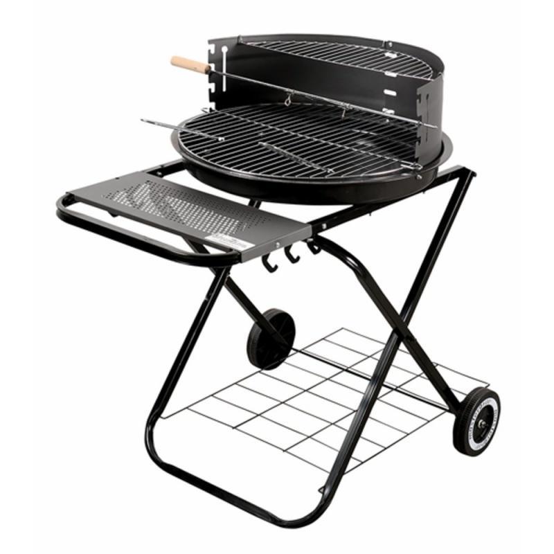 Grill posiada ułatwiające grillowanie półki : boczną oraz pod rusztem, który jest z kolei wykonany z mocnej stali chromowanej. Misa wykonana ze stali emaliowanej. Średnia grilla wynosi 54,5 cm, wysokość: 84 cm.