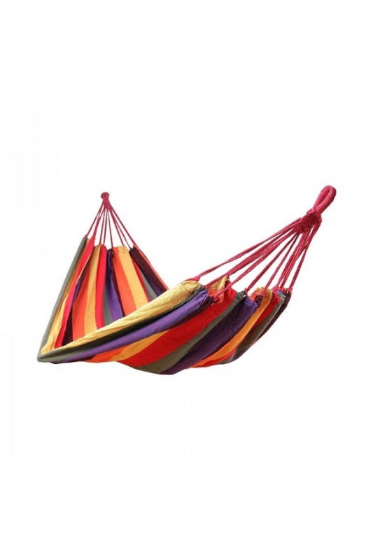 Hamak wykonany z wysokiej jakości bawełny posiada wygodne siedzisko dopasowujące się do kształtu ciała. W produkcie zwiększono ilość solidnych link, dzięki czemu ciężar rozkłada się równomiernie, co znacznie wpływa na możliwość komfortowego wypoczynku.