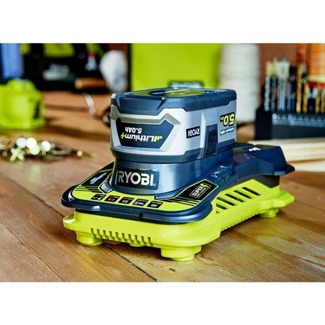 Ładowarka RYOBI do akumulatorów z seriii ONE+ z opcją szybkiego ładowania.