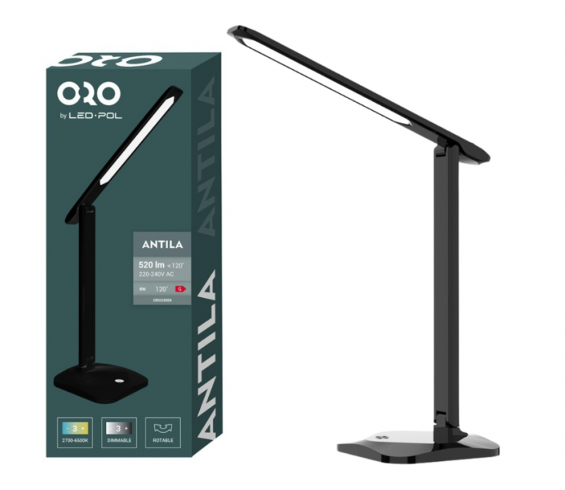 Lampa biurkowa Antila LED 8W i jasności 520lm w kolorze czarnym to praktyczne oświetlenie do biura i miejsc pracy, wyposażone w energooszczędną technologię LED. Dzięki elastycznemu ramieniu można dowolnie regulować kąt padania światła, co pozwala na idealne dostosowanie oświetlenia do potrzeb użytkownika. Lampa zapewnia jasne, naturalne światło, minimalizując zużycie energii i zwiększając komfort pracy przy biurku.