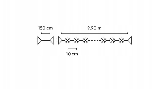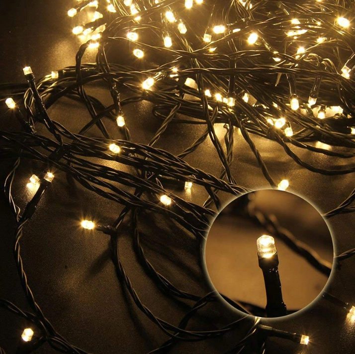 1. Ciepłe białe światło – 100 diod LED emitujących delikatne, ciepłe światło, idealne do tworzenia świątecznej i przytulnej atmosfery w ogrodzie lub na elewacji budynku.