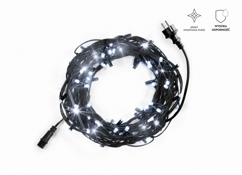 2. Zimne białe światło – 100 diod LED emituje jasne, chłodne światło, które świetnie nadaje się do świątecznych dekoracji zewnętrznych.