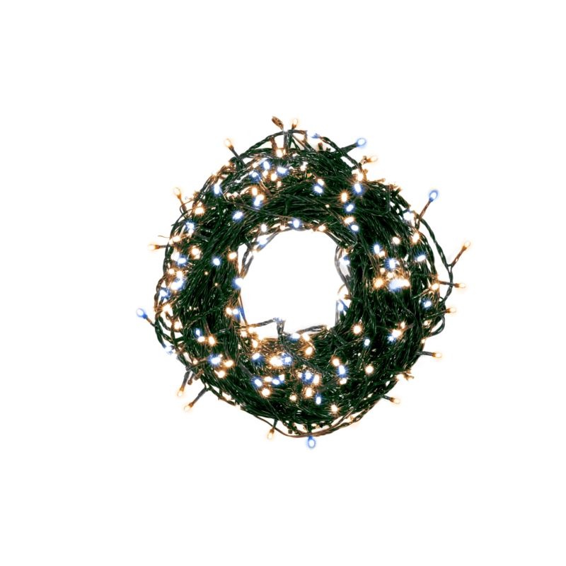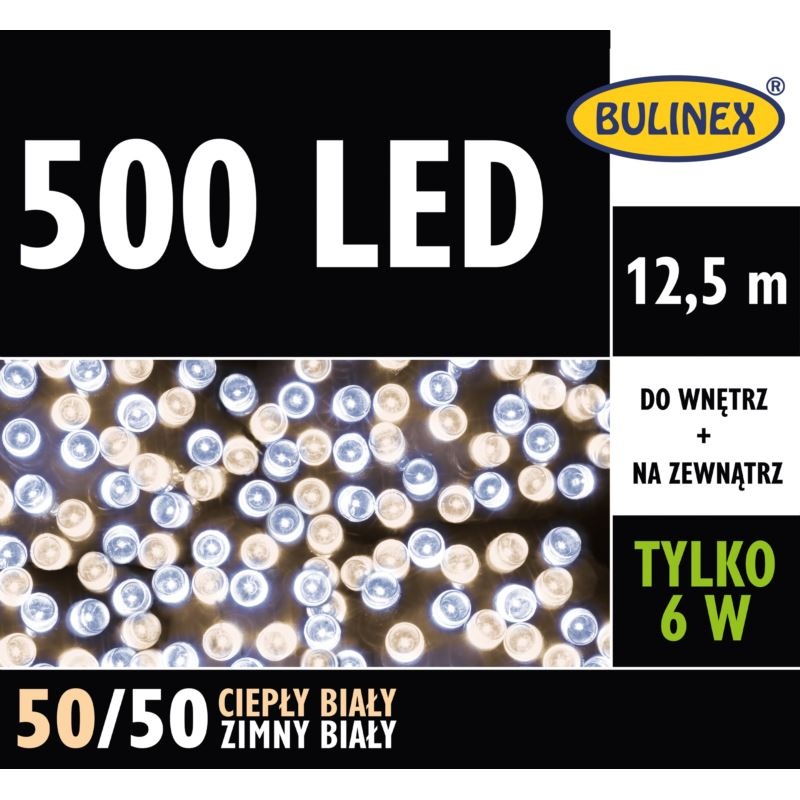 Lampki LED Bulinex 500 z zasilaczem to idealne rozwiązanie do efektownych dekoracji świetlnych na zewnątrz oraz wewnątrz budynków. Dzięki mieszance ciepłych i zimnych białych diod, lampki wprowadzą wyjątkowy klimat do każdej przestrzeni, nadając jej świątecznego blasku.