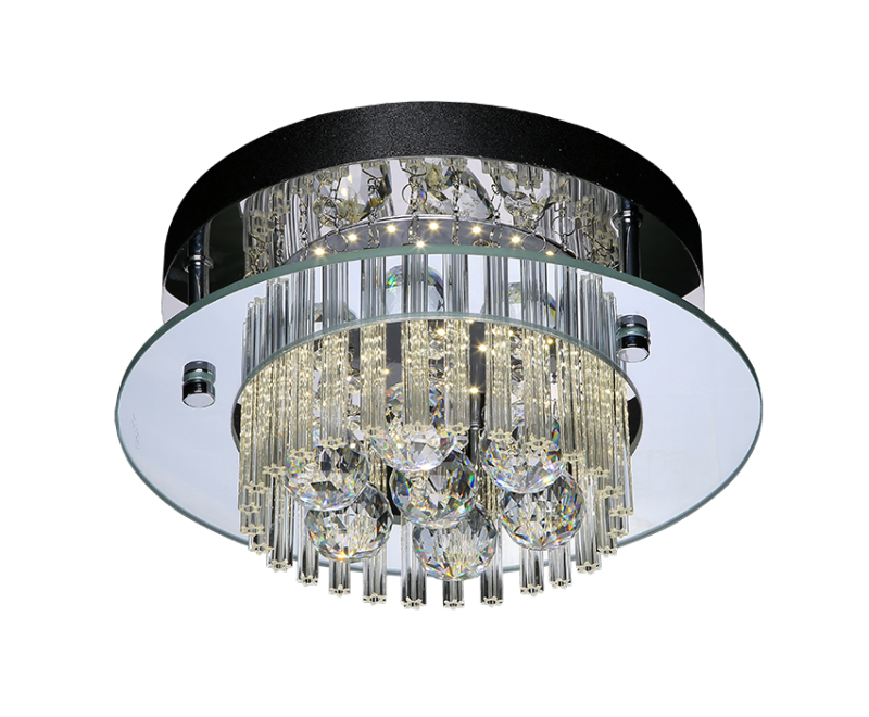 Plafon Cerro firmy Light Prestige to produkt łączący w sobie zarówno klasykę, jak i nowoczesność. Lampa szklana z pięknymi kryształkami sprawdzi się przede wszystkim w przestronnych salonach, czy salach bankietowych. Plafon z zawartym źródłem światła w postaci oświetlenia LED.