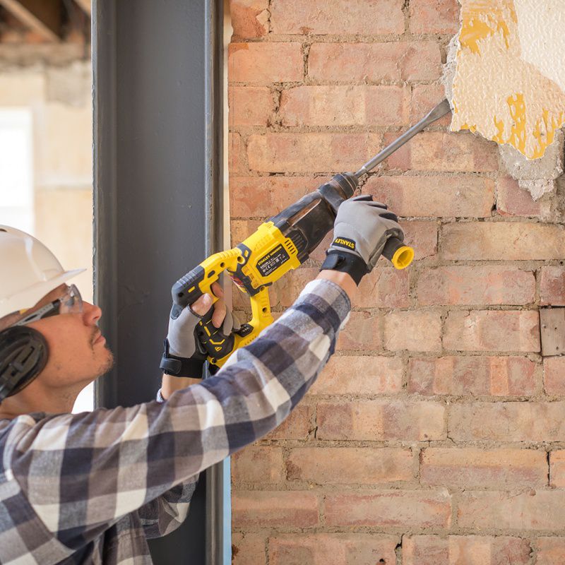 Akumulatorowa młotowiertarka udarowa SDS Stanley FMCD900M2S wyposażona została w konstrukcję i rękojeść w kształcie litery D, co znacznie zmniejsza wibrację oraz sprawia, że wydajność maszyny jest znacznie większa. Urządzenie z udarem elektropneumatycznym o energii udaru 1,5J sprawdzi się przy pracy w naprawdę twardych materiałach.