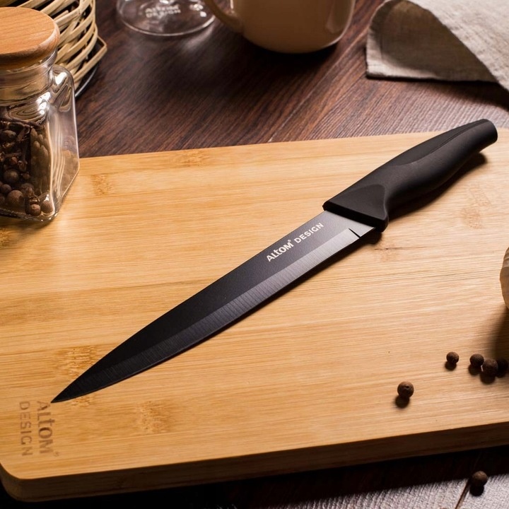 Nóż szefa kuchni kuchenny nieprzywierający Altom Design czarny 32 cmALTOM13,98 zł / szt0.44 zł / cm Nr katalogowy: 5907508199104 Dostępność: w magazynie Dostawa: od 0 zł ilość Nóż szefa kuchni kuchenny nieprzywierający Altom Design czarny 32 cm Dodaj do koszyka Kategorie: Dom, Noże kuchenne Marka: ALTOM