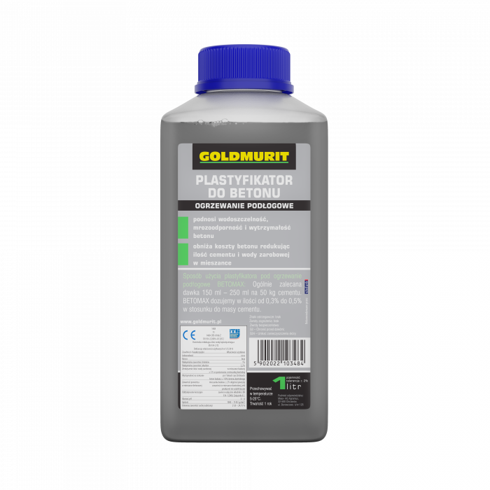 Plastyfikator pod ogrzewanie podłogowe i do betonu marki Goldmurit to specjalistyczny dodatek przeznaczony do modyfikacji właściwości mieszanki betonowej, szczególnie w systemach ogrzewania podłogowego.