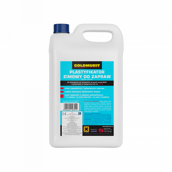 Plastyfikator zimowy do zapraw marki Goldmurit to specjalistyczny dodatek uplastyczniająco-napowietrzający, umożliwiający wykonywanie prac budowlanych w niskich temperaturach, nawet do -10°C.