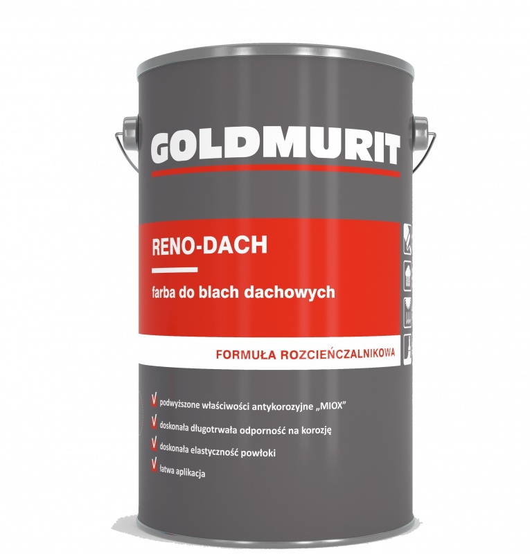 Reno-Dach to akrylowa, wodorozcieńczalna farba ochronno-dekoracyjna przeznaczona do malowania dachów i innych elementów wykonanych z blachy ocynkowanej oraz aluocynkowej.