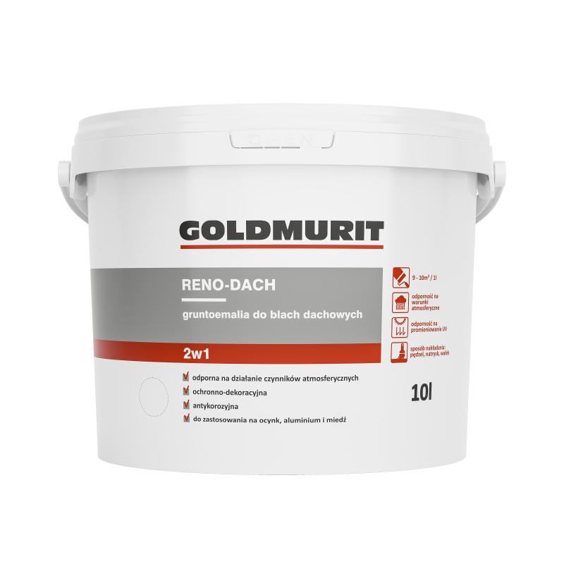Farba Reno-Dach to wodorozcieńczalna, akrylowa farba ochronno-dekoracyjna, która łączy funkcje farby gruntującej i nawierzchniowej, zapewniając trwałą i estetyczną powłokę.