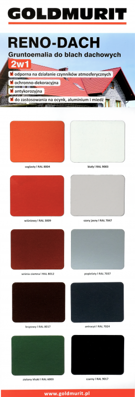 Reno-Dach – farba do dachów wiśniowy RAL3009 5lGOLDMURIT235 zł / szt47.00 zł / litr Nr katalogowy: 5902022109738 Dostępność: w magazynie Dostawa: od 0 zł ilość Reno-Dach - farba do dachów wiśniowy RAL3009 5l Dodaj do koszyka Kategorie: Farby do blach dachowych, Farby zewnętrzne Marka: GOLDMURIT Informacje dodatkoweParametry Pliki do pobraniaPliki Informacje dodatkowe Pojemność 5 l Spoiwo akryl Rozcieńczalnik woda Wydajność 9-10 m2/l KCH Renodach-1.pdf 338 KB KT Renodach-1.pdf 218 KB