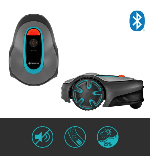 Zdalne sterowanie przez Bluetooth – Aplikacja GARDENA Bluetooth umożliwia łatwe sterowanie robotem, ustawianie harmonogramów oraz monitorowanie pracy kosiarki na odległość do 10 metrów.