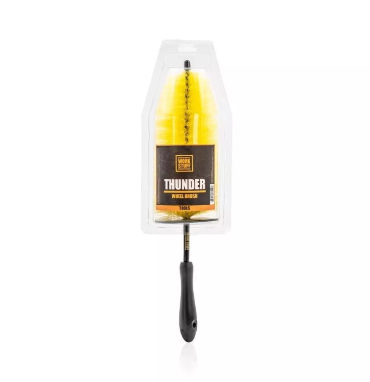 Szczotka do mycia felg THUNDER Wheel Brush 45 cm od WORK STUFF to profesjonalne narzędzie do pielęgnacji felg, łączące delikatność z efektywnością. Dzięki większej powierzchni myjącej i elastycznej konstrukcji, szczotka łatwo dociera do trudno dostępnych miejsc, co zapewnia dokładne czyszczenie felg. Jej miękkie włosie jest delikatne dla powierzchni, minimalizując ryzyko zarysowań, a odporność chemiczna gwarantuje długotrwałe użytkowanie. Szczotka jest również łatwa do czyszczenia, co czyni ją niezwykle praktycznym narzędziem do codziennej pielęgnacji felg.