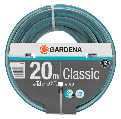 GARDENA Classic wąż ogrodowy jest odporny na ciśnienie robocze wody i na odkształcenia. Nie zawiera toksycznych ftalanów ani metali ciężkich. Jest również odporny na promieniowanie UV. Do łączenia z innymi elementami Original GARDENA System. Dzięki temu nadaje się idealnie do komfortowego i wielostronnego zastosowania w ogrodzie. Ciśnienie rozrywające do 22 bar. GARDENA udziela na ten wąż gwarancji na okres 12 lat.