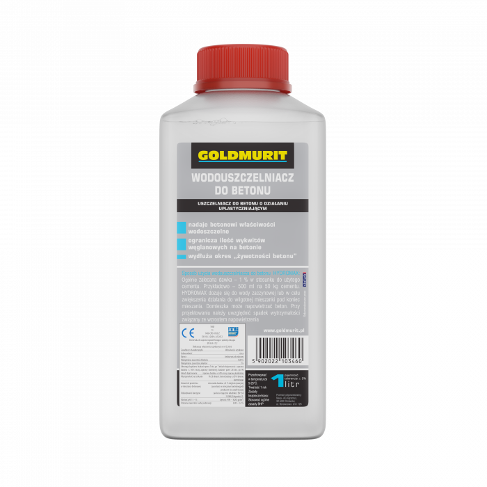 Wodouszczelniacz do betonu marki Goldmurit to specjalistyczny dodatek uplastyczniający, przeznaczony do nadawania mieszankom betonowym właściwości wodoszczelnych.