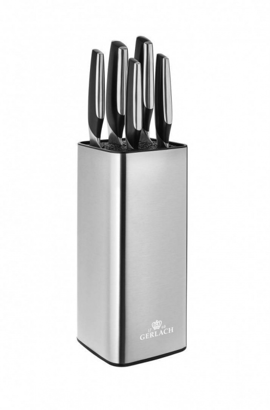 Komplet Prestige to elegancki, kwadratowy blok pokryty stalową powłoką oraz 5 uniwersalnych noży o różnych funkcjach.